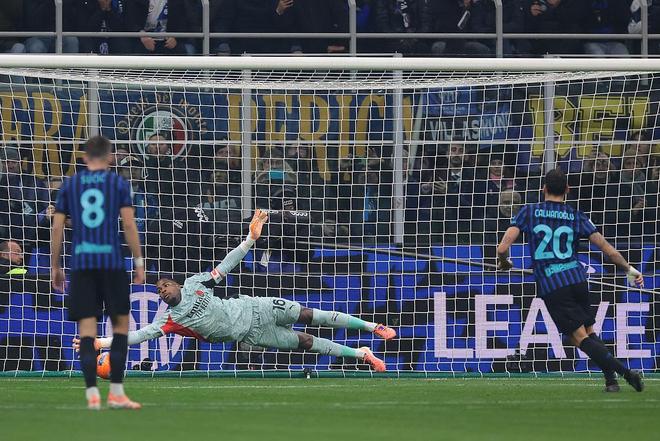 恰尔汗奥卢本有机会将功补过,然而第74分钟小图拉姆禁区内遭遇犯规制造的点球又被他葬送,米兰门神精准预判了恰尔汗奥卢的射门方向,将点球扑出。